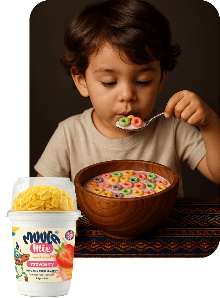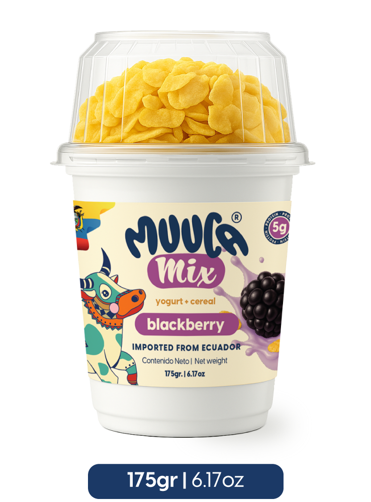 El auténtico yogurt ecuatoriano se une a nuestro crujiente cereal para darte una experiencia completa en cada empaque. Hecho con leche fresca de los Andes y el sabor natural de las frutas más queridas de nuestra tierra, Muuca Mix es la combinación perfecta de nutrición y practicidad.